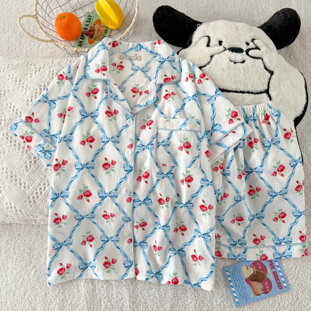 バブルシワ新しいインパジャマ女性の夏のスーツ甘い女の子薄い半袖学生バブルシワホーム服