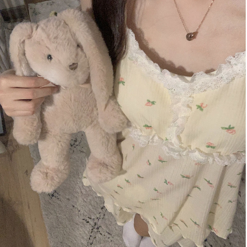 韓国キャミソールネグリジェ女性のミッドレングス夏アイスシルク甘いプリンセススタイル薄いかわいいパジャマホーム服