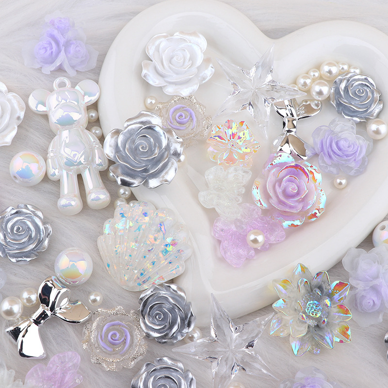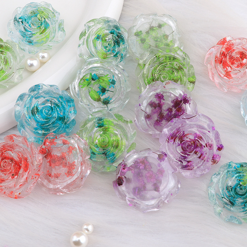 新しい氷透明色インターネット有名人の下駄バックル牡丹樹脂アクセサリー diy 携帯電話ケースクリーム接着剤ヘアピン