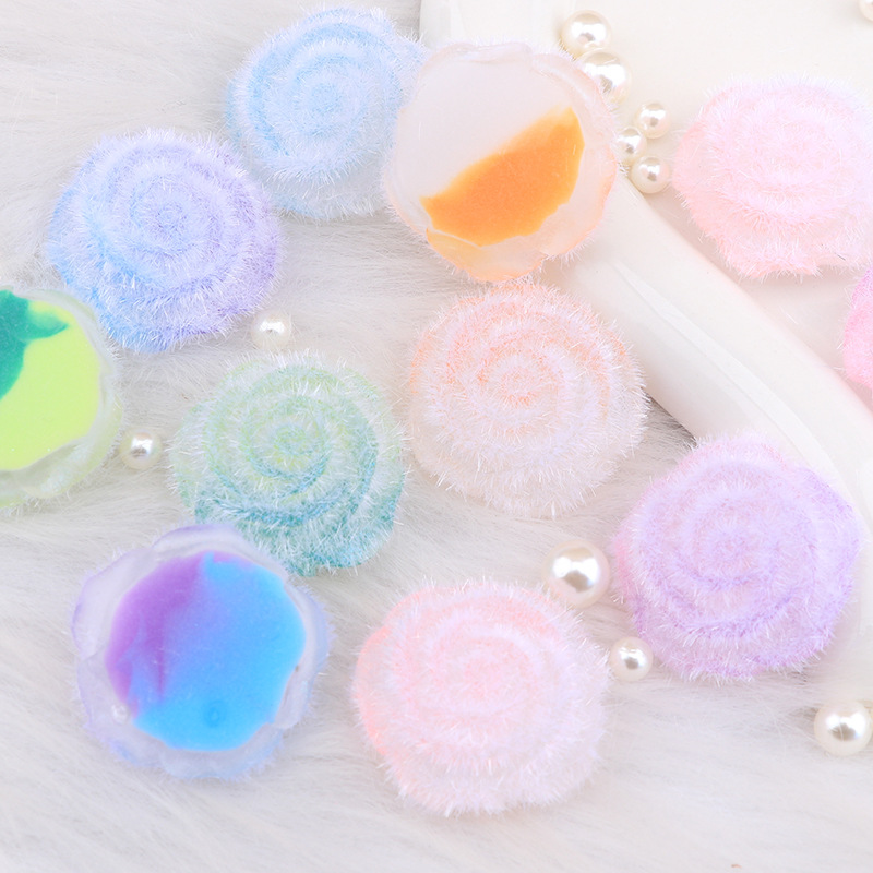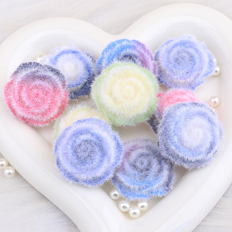 長い植毛の透き通った色のぼかしの螺旋のバラの花はdiyの携帯電話の携帯電話のクリームのゴムの収納箱の装飾品のヘアピンを作ります。