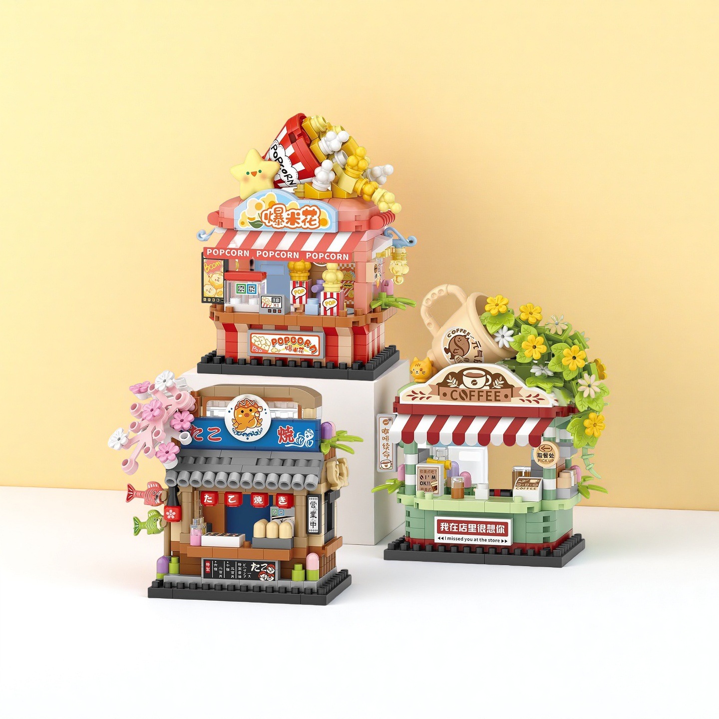 LOZ8851-53 ストリートショップビルディングブロック組み立ておもちゃポップコーンコーヒータコ焼きストリートシーン装飾品