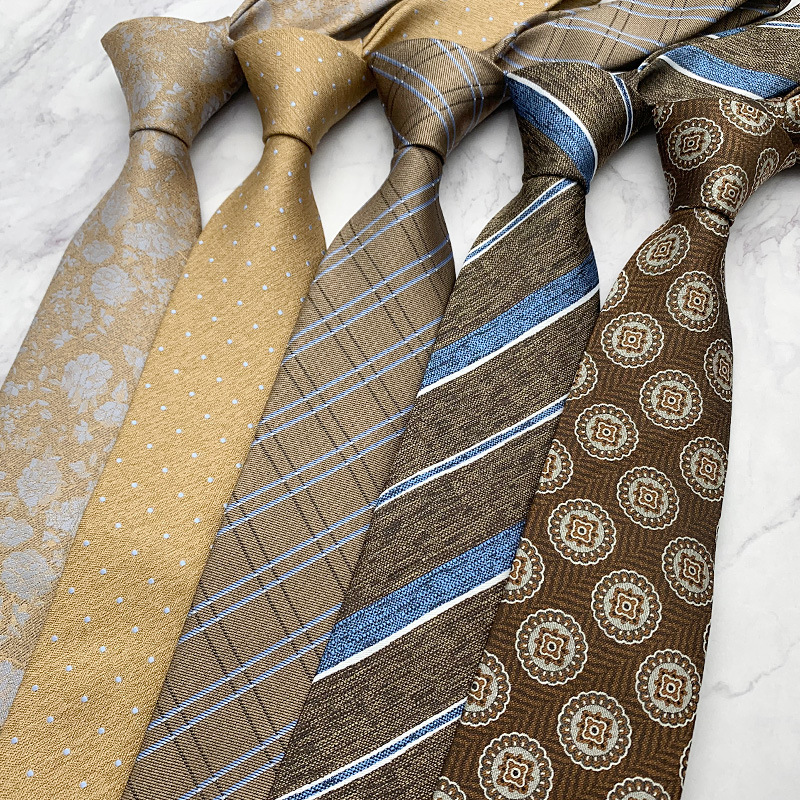 ネクタイ男正装ビジネス洋服アクセサリー新作花型カーキシャンパンコーヒーブラウン系手打幅版8cm