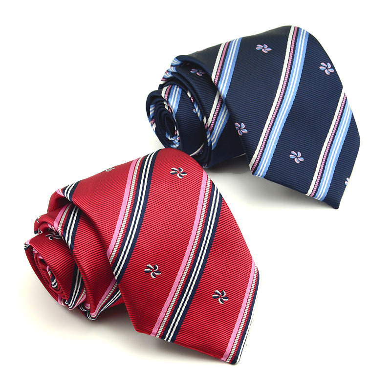 潮の男性は韓国版の英倫のファッションの黒と赤と青と紫の斜めのストライプの銀糸の点を結びます。