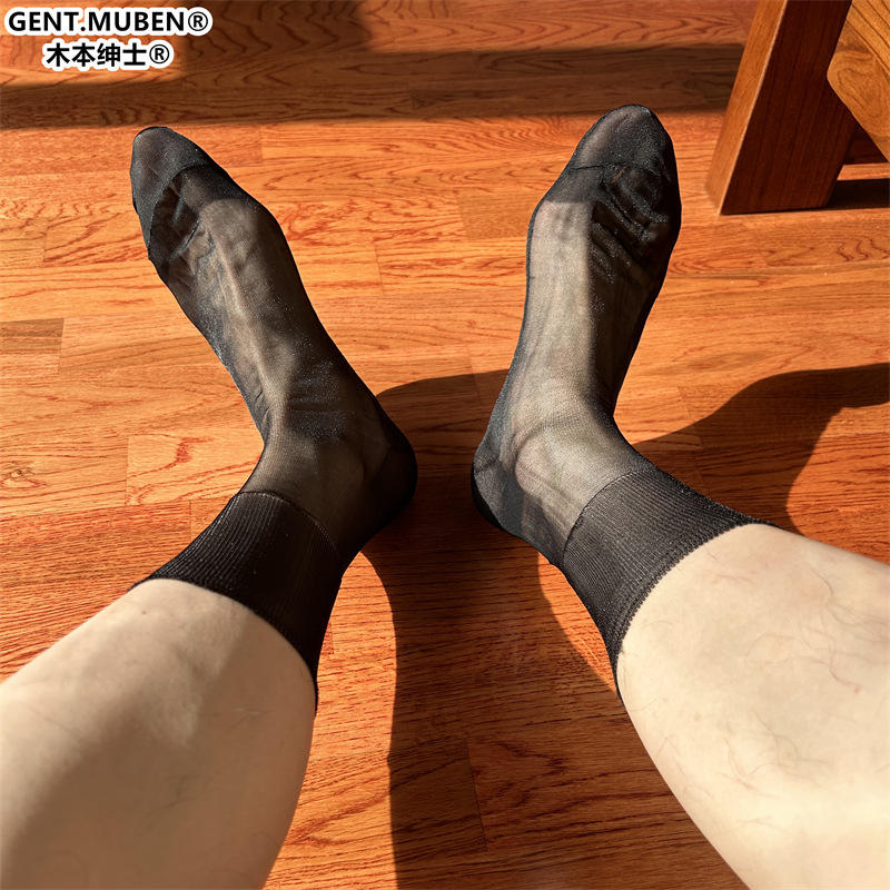 木本紳士超透明つま先透明男性ビジネススーツ中長筒日系ナイロン正装下腿ストッキング