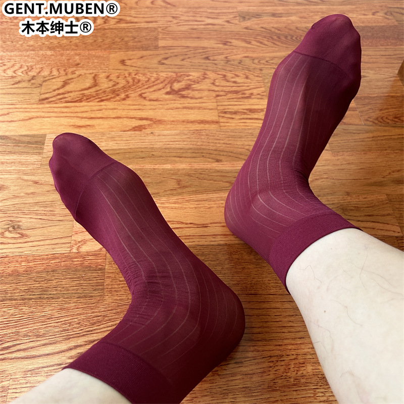 木本紳士超透足先透明男性ビジネススーツ長筒日系ナイロン正装下腿ストッキングb01