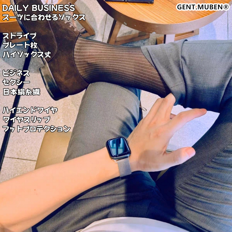 木本紳士紫足指チベット青細いストライプ男性ビジネススーツ中長筒日系ナイロン正装ストッキング