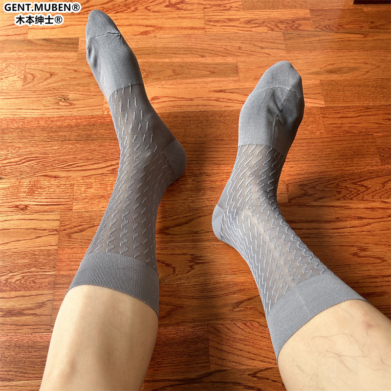 中筒TNT波紋対外貿易クロスボーダー灰色男性ビジネス正装革靴日系ナイロンスーツストッキング