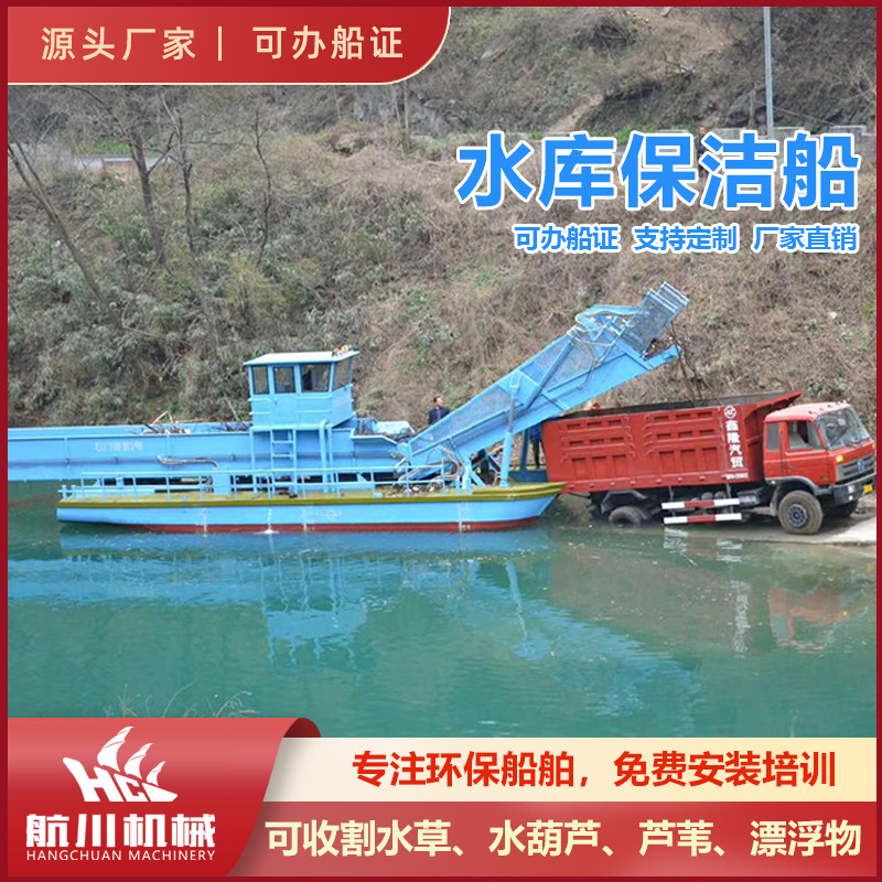 川の水のヒョウタンは船の水面の雑草をすくい取って設備を刈り入れて水草の機械をきれいにします。