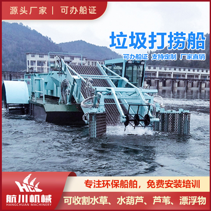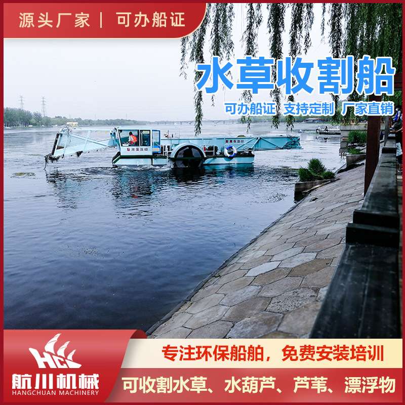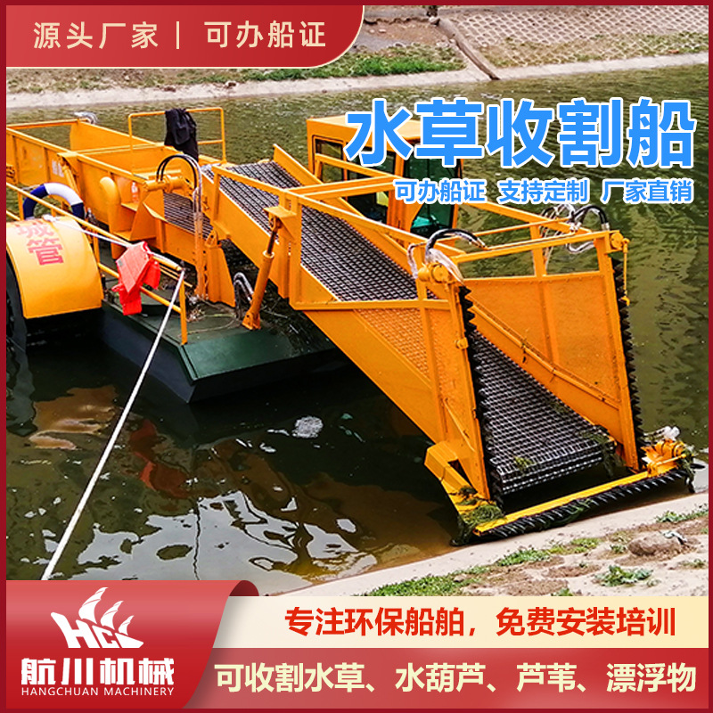 河道水面水落花生水草収穫船自動水ひょうたんすくい船水上清草船