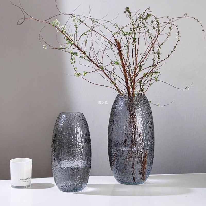 シンプルな大型ガラス花瓶、水栽培の富の竹、眠り木、雪柳の装飾品、リビングルームのフラワーアレンジメント