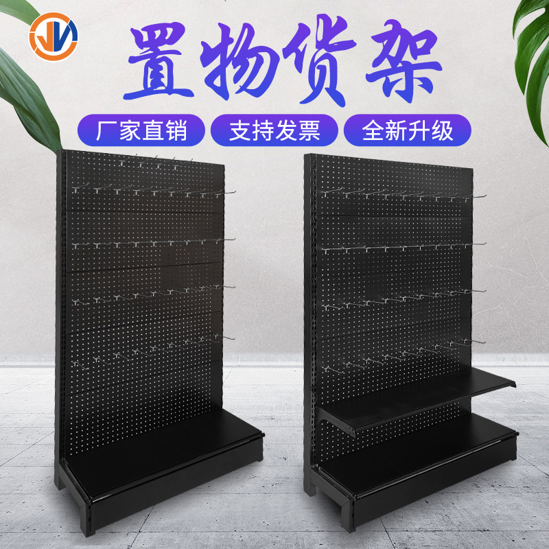 黒色洞板スーパー棚直播間宝飾品着地展示棚展示会フック着地棚