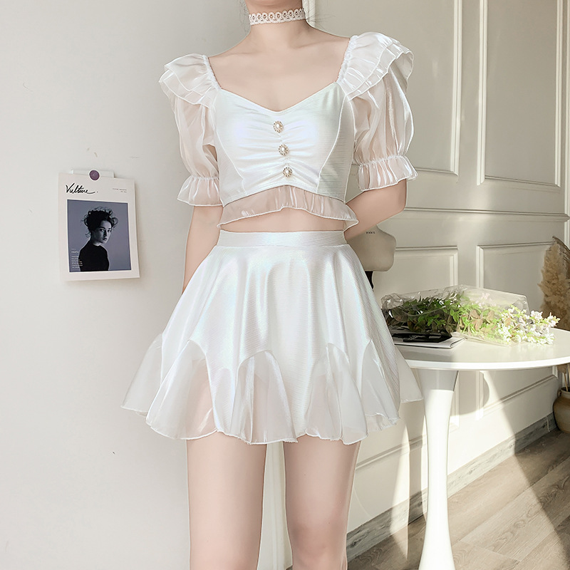 韓国イン純粋な欲望少女保守的な痩身お腹カバー甘い女の子長袖蝶ワンピース水着温泉休暇水着