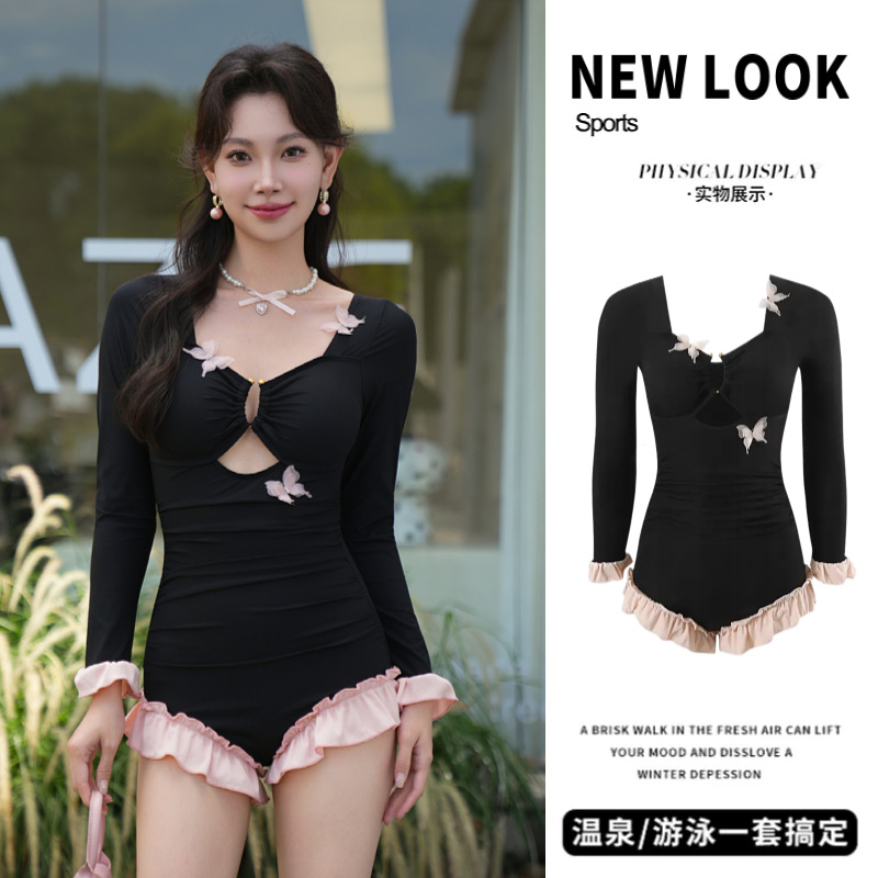 2024新型水着女性ワンピース女性高級感保守長袖日焼け止め卸売り水着冬温泉