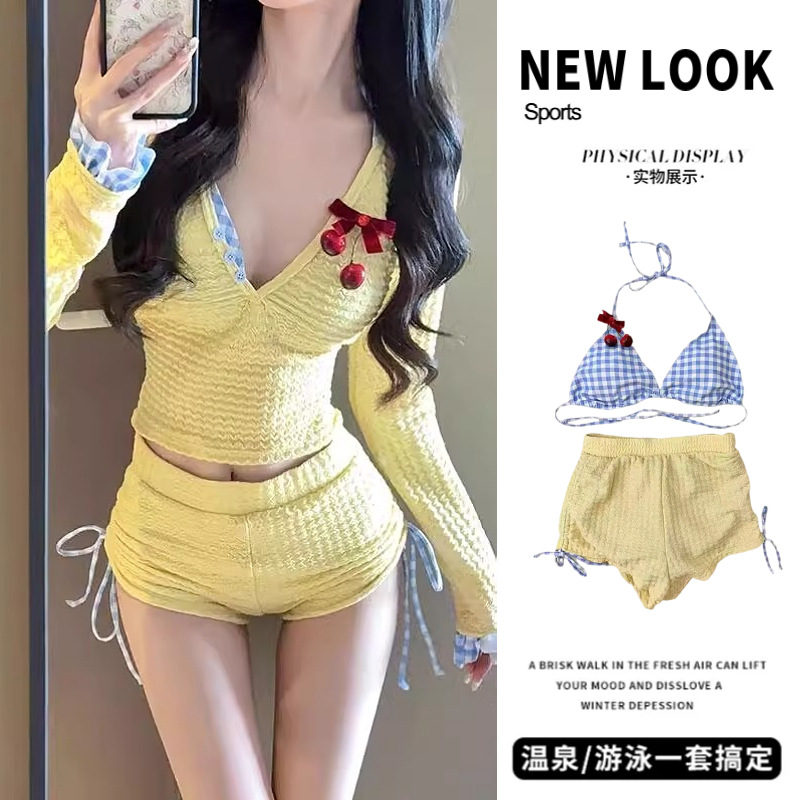 高級水着女性用日焼け止め3点セットビーチ休暇で痩せた長袖温泉ブラウスビキニ水着