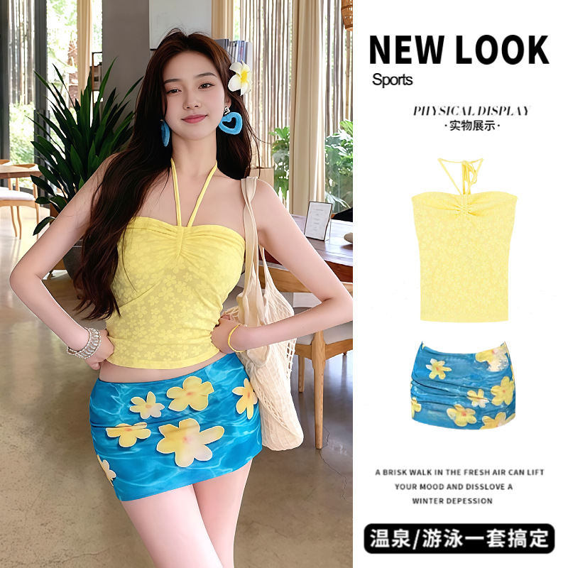 2025 新しいスポーツスタイルの女性のスプリットイン腹カバー痩身スカートスタイル温泉特別な腹カバー水着卸売
