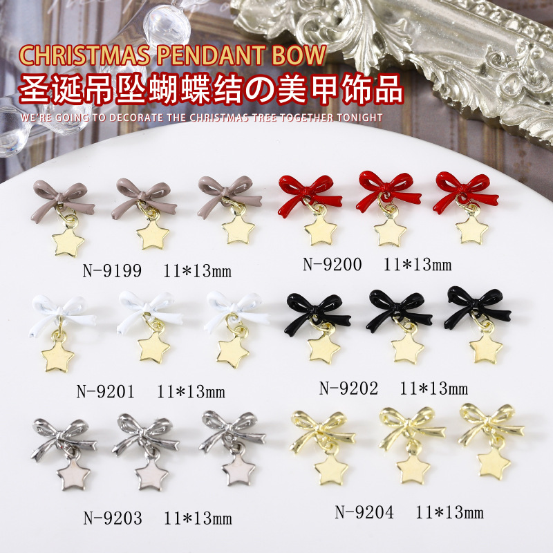 蝶結び五芒星ネイルアートアクセサリー 秋冬クリスマス新作 合金スターペンダント 立体ネイルデコレーション