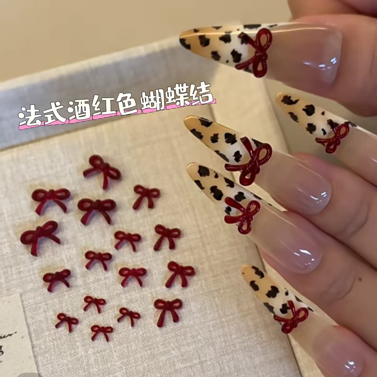 ネットの赤い蝶結びの合金のミニネイルアクセサリーの透かし彫りのリボンの樹脂の爪は卸売りを飾ります。