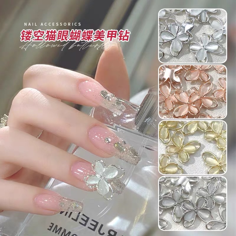 インターネット有名人中空キャットアイ蝶合金ネイルアートジュエリーゴールドシルバーメタル立体ネイル装飾メーカー卸売