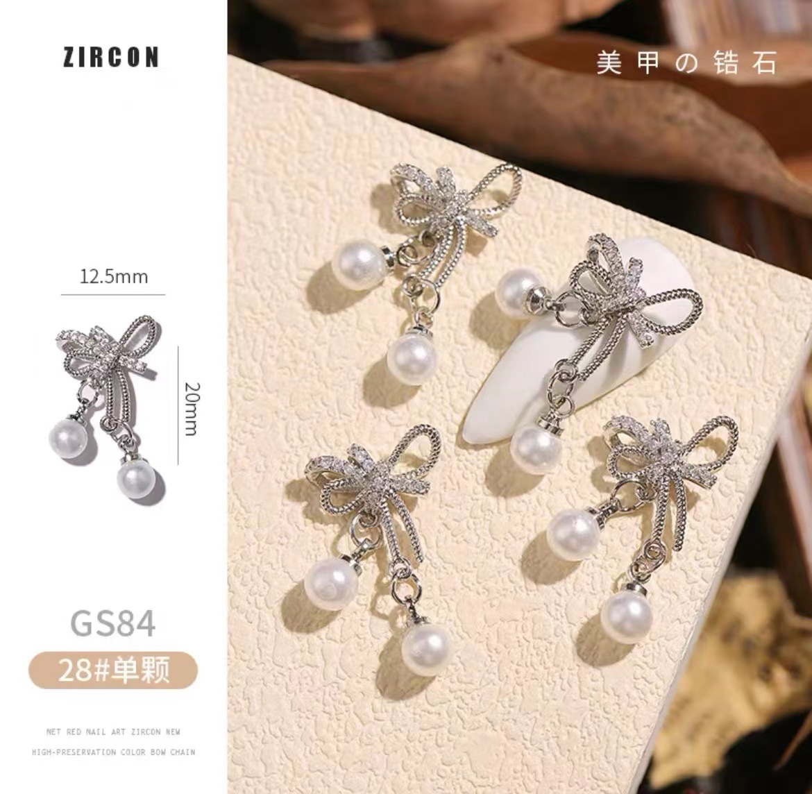 新しいネイルジルコンのアクセサリー卸売り蝶結び真珠愛ペンダントネット赤蝶保色爪装飾ドリル