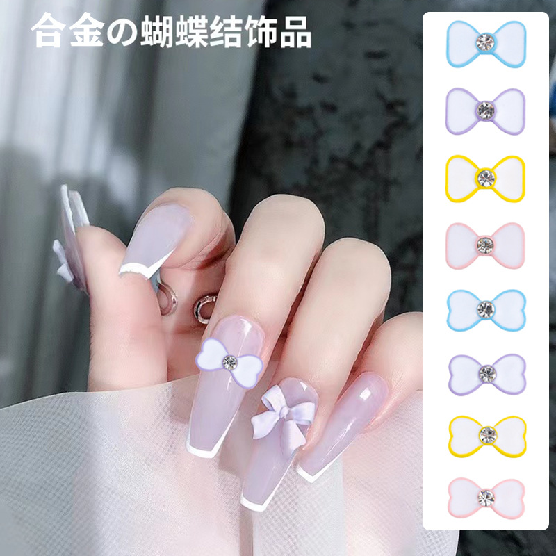 ネイルアート合金滴油蝶結びアクセサリー卸売りネット紅爆金キャンディー色蝶爪アクセサリードリル装飾品