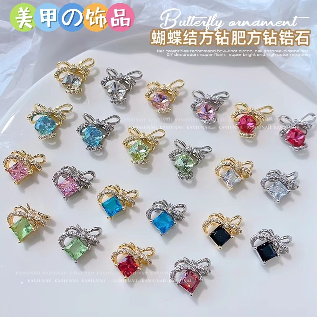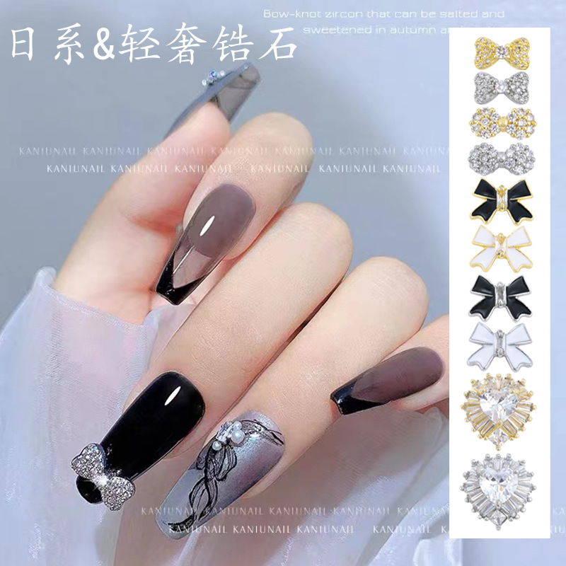 ネイルアート弓ジルコンジュエリー卸売日本の新しいインターネット有名人スーパーフラッシュ象嵌マイクロジルコニウムスクエアダイヤモンドネイルダイヤモンドアクセサリー