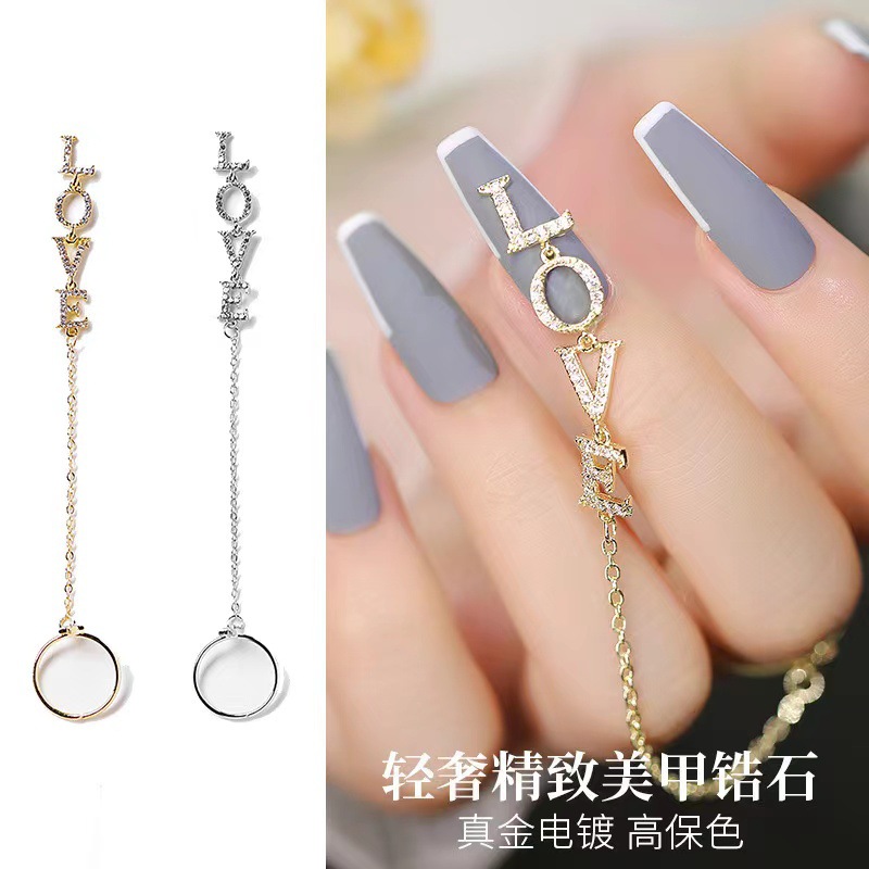 ネット赤新ネイルアクセサリー卸売りジルコン真金メッキloveチェーン爪装飾品アクセサリーネイルドリル