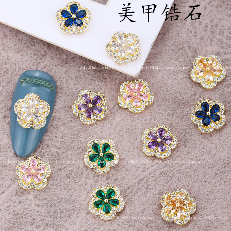 日系の新型ネイルアイスキュージルコンのアクセサリーは豪華で、高保色のカラー五弁の花の爪のダイヤモンドのアクセサリーの卸売りです。