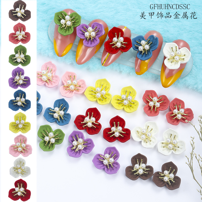 メーカー直販ネイル三弁花真珠アクセサリーネイルアクセサリー合金塗装金属ネイルアクセサリー