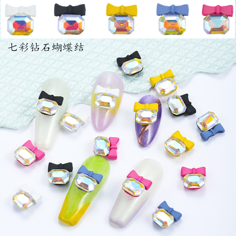 キャンディの色の大きいドリルのカラーの蝶結びの月の光のドリルはダイヤモンドのまぶしいかわいい少女の蝶結びのネイルアクセサリーの合金を入れます。