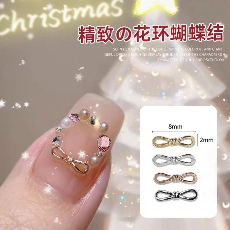 ネイル装飾品クリスマス花輪蝶結び小蝶ネクタイアクセサリー麻花ひも爪アクセサリー真珠ドリルアクセサリー