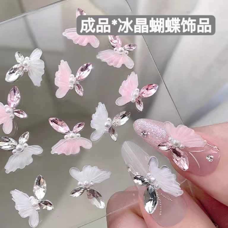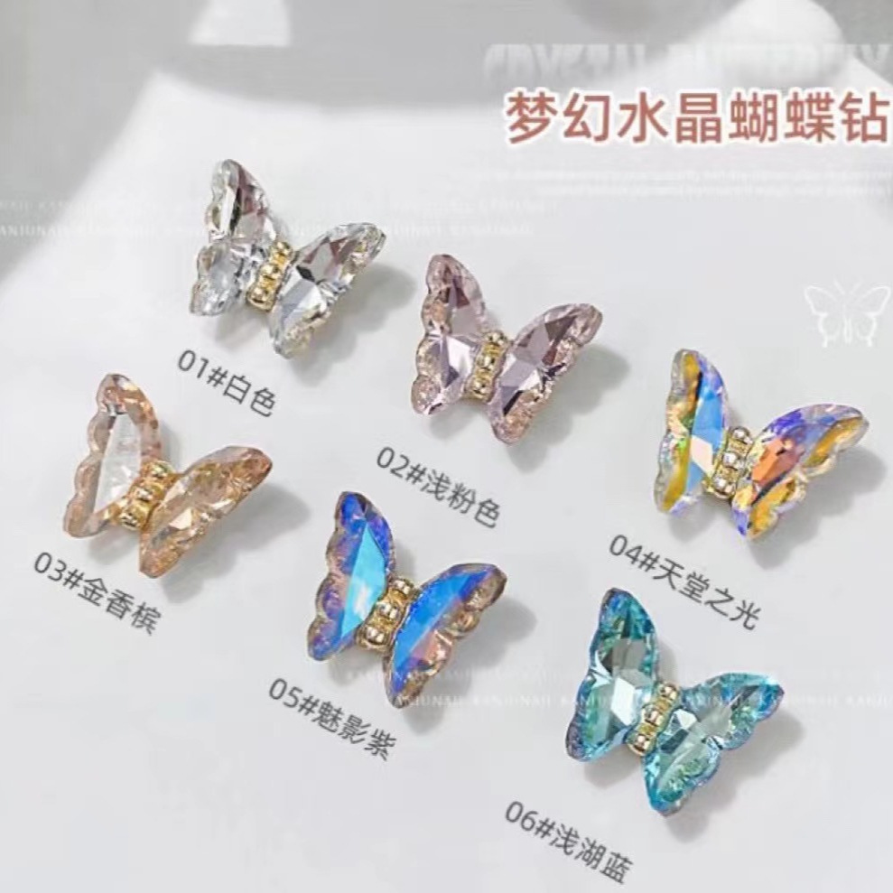 ネットで話題のクリスタル蝶ネイルデコレーション、合金製立体半翼蝶、キラキラ輝く高級ネイルダイヤモンド、付け爪用アクセサリー