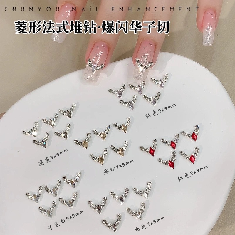 ネットの赤い爆発のネイルアクセサリーのフランスの菱の山のドリルの完成品の超フラッシュのv型の山のドリルの爪のアクセサリーのメーカーの直接販売
