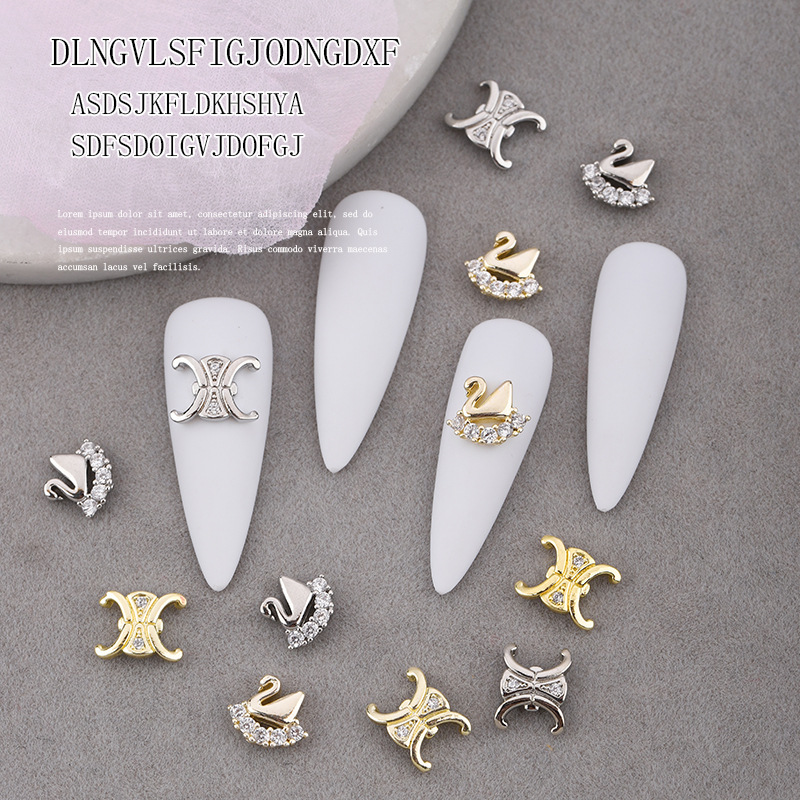 日本の新しいネイルアートアクセサリーライト高級ジルコン金属立体漫画白鳥ネイルダイヤモンド装飾卸売
