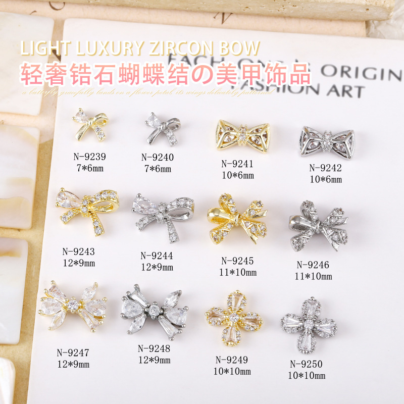 ネイルアクセサリーのジルコンの蝶結びのリボンの金属の日系の軽い豪華な超閃四葉草の花の爪のアクセサリーのメーカー