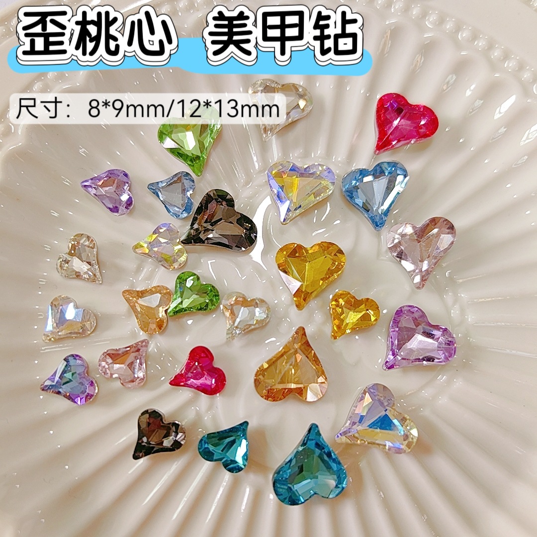 ネイルアート用斜めハート型クリスタル、ネットで話題沸騰中の豪華で超キラキラ輝く大きなハート型ネイル用カラードリル、卸売販売