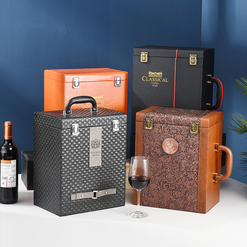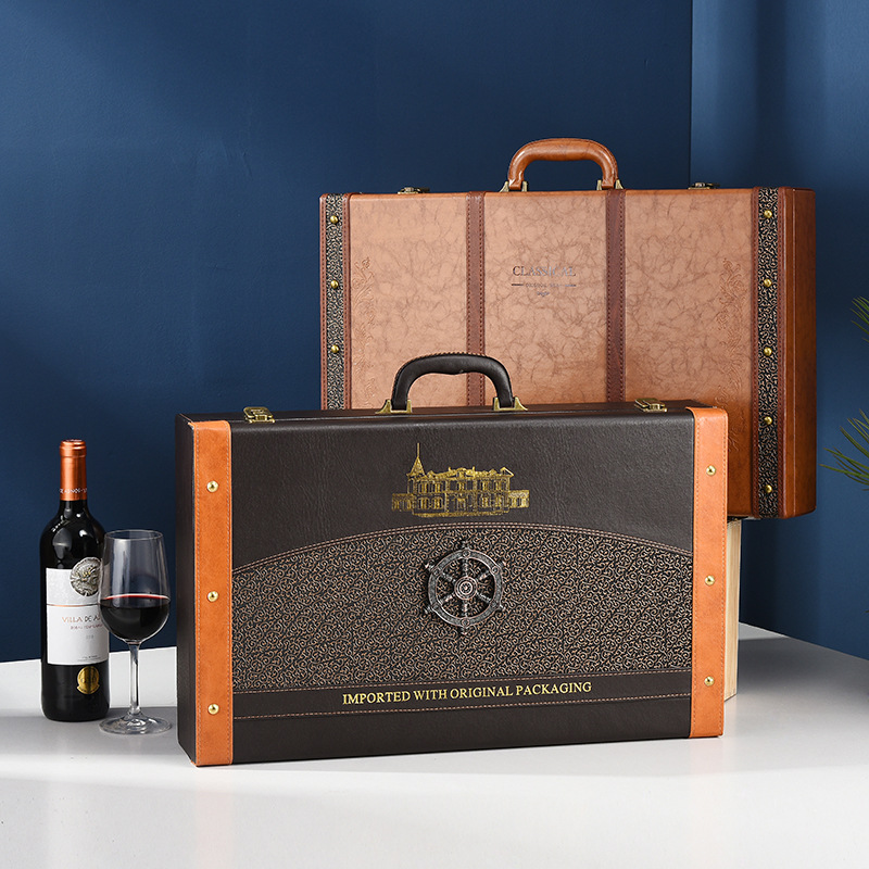 スポット卸売赤ワイン包装ギフトボックス、ダブル赤ワインレザーボックス、ワイン包装、赤ワインギフトボックス包装箱
