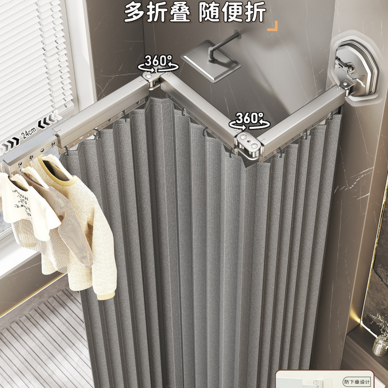 浴室シャワーカーテン折りたたみ目に見えないパンチフリー浴室乾湿分離シャワーカーテン防水防カビシャワーパーティション