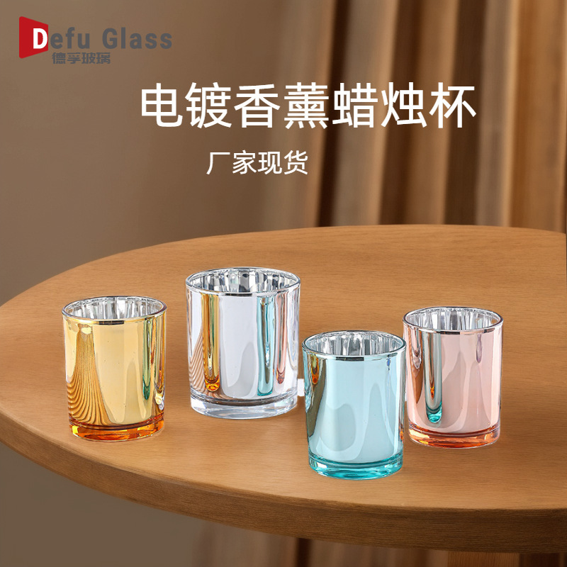新しいクリエイティブな香りのキャンドルカップ、シンプルなホテルの家の屋内装飾品、カラフルな電気メッキのガラスカップ、卸売在庫あり