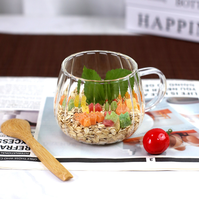 高ホウ素シリコン牛乳コーヒー朝食カップ大容量円趣味カップ縦紋取っ手円趣味カップ花びらカップバッチ