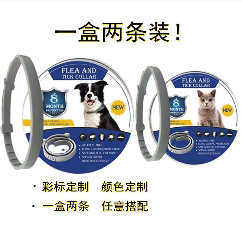 ペット用駆虫首輪、猫と犬のノミ取り、屋外用防蚊首輪、クロスボーダーラベル付きドロップシッピング