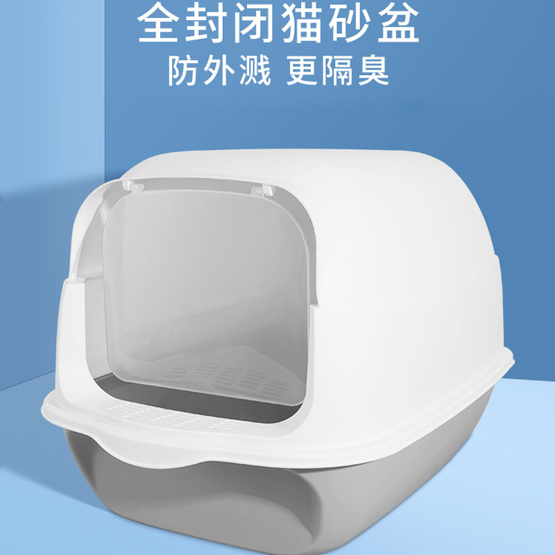 完全密閉型猫トイレ PPプラスチック製 耐衝撃性 フリップカバー付き 消臭設計 簡単清掃 ペット用猫トイレ収納