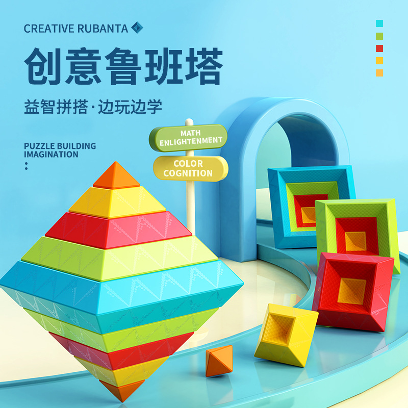 益智は積み木のピラミッドを合わせて積み木を積み重ねます。