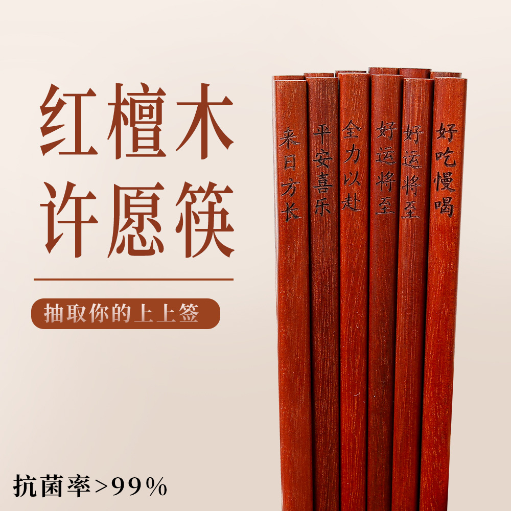 紅檀木箸プレゼント家庭用卸売り中国式実木箸滑り止め商用国潮風彫刻食器
