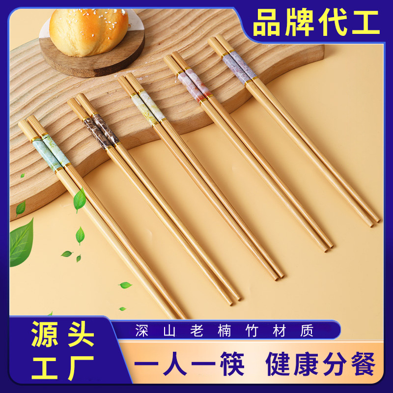 家庭用箸楠竹大理石紋花膜竹箸滑り止め高颜値一人一色分箸卸売り