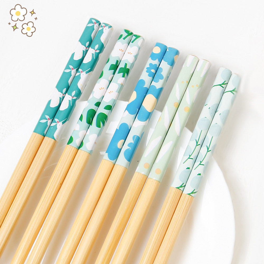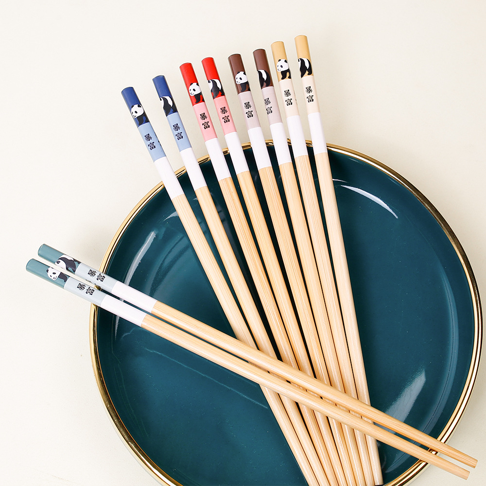 五色竹箸ノンノットプリント箸卸売24センチメートル滑り止め食事共有箸セラミックボウルフラワーフィルム竹箸