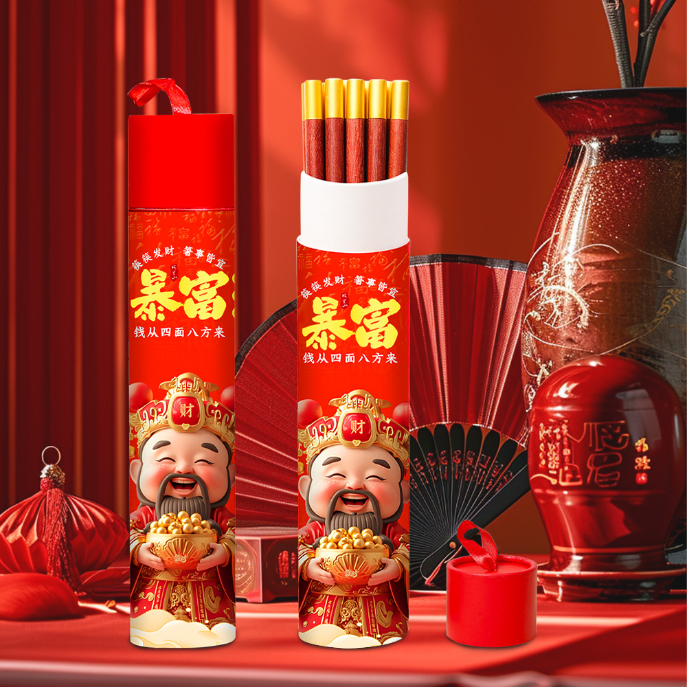 国潮新年開門紅創意ギフト箸春節暴富円筒装鶏翅木実木箸無漆無ワックス