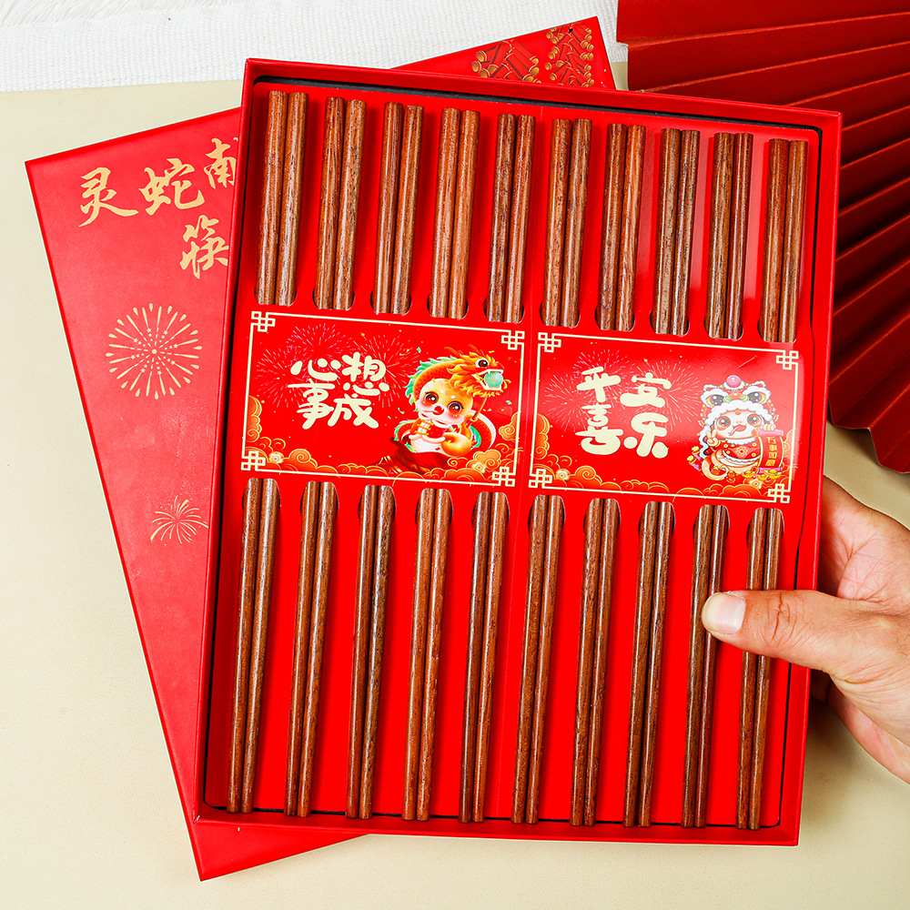 蛇年開門紅礼品箸10足入り家庭用滑り止め実木箸礼箱セット卸売り印刷ロゴ