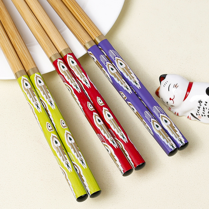 家庭用竹箸卸売り24cm羽毛金花膜プリントカラー分食箸一人箸ギフト箸共同購入
