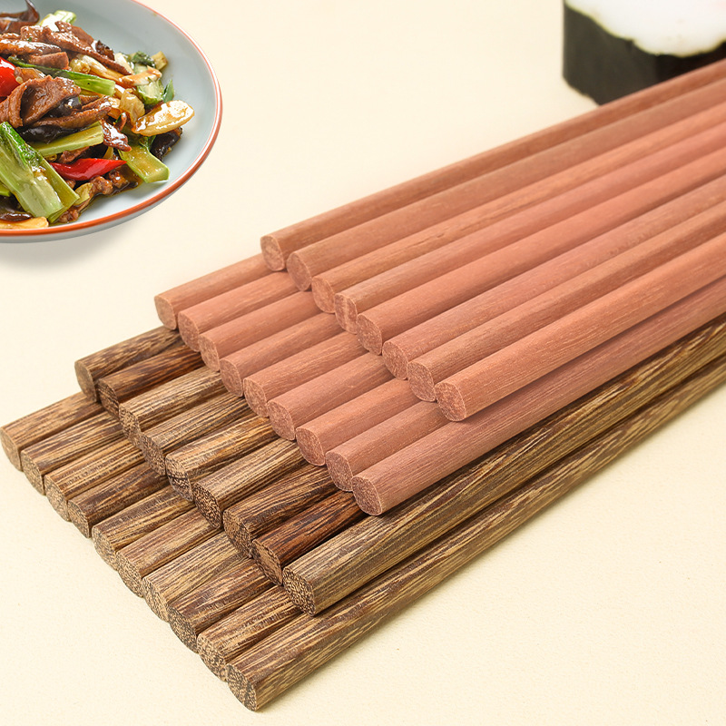 10足の包装は鶏の羽の木の箸の実木の家庭の赤い檀の木の無漆のワックスの彫刻の卸売りの震え音の共同購入を郵送します。