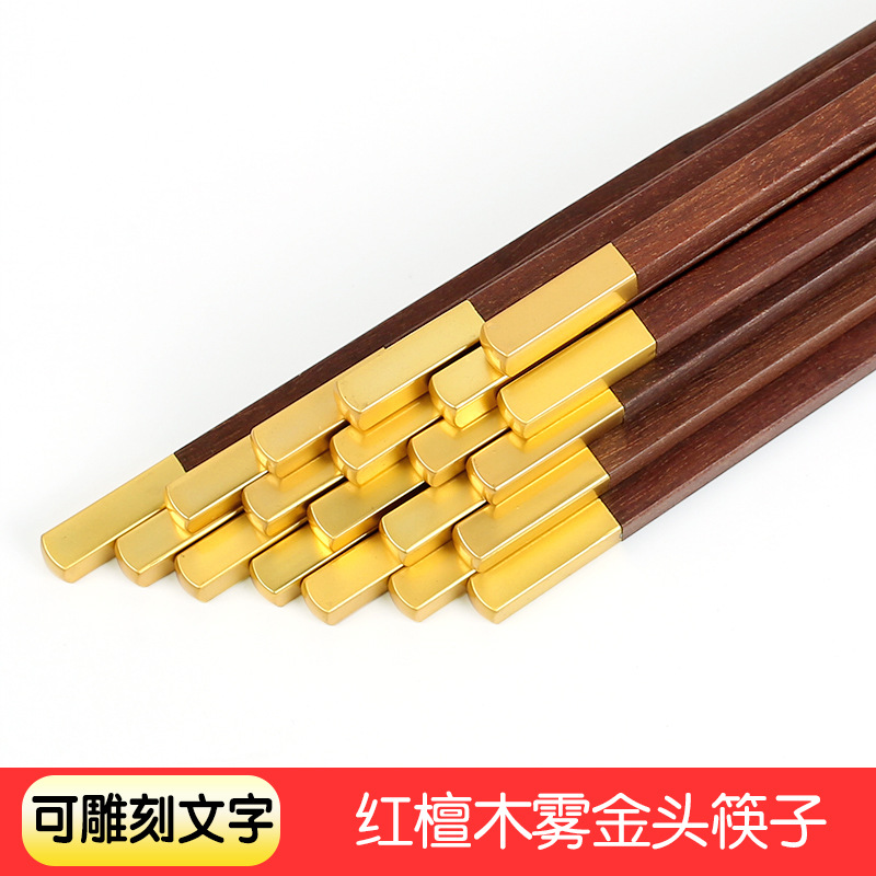 メーカー卸売り新中国式実木箸鶏翅紅檀工芸箸logo円頂福刻字公箸